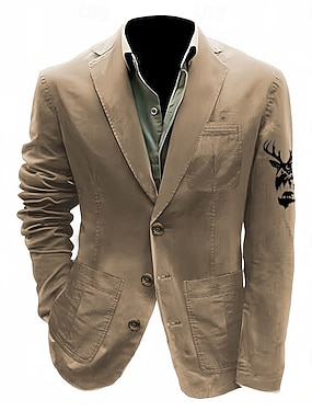 男性用 トナカイ プリント コットンスーツジャケット スーツコート ブレザー カジュアル アウトドア 日常着 カジュアル 複数のポケット 3つボタンのストライプ裏地付きスーツジャケット 秋 冬 ノッチドラペル 長袖 ブラック カーキ色 アーミーグリーン