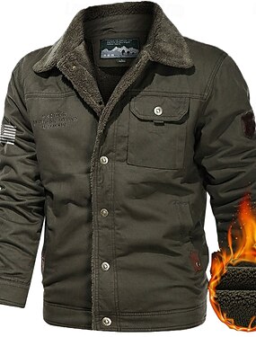 メンズ刺繍フリースジャケット シェルパトラッカージャケット ワークカーゴジャケット ターンダウンカラー 暖かい冬用コットンジャケット ヴィンテージ カジュアル お出かけコート マルチポケット