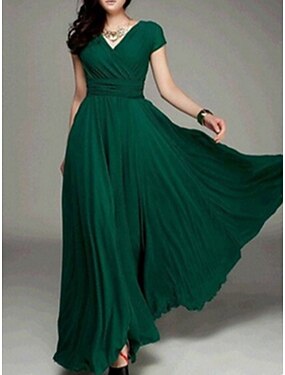 女性用 ロングドレス マキシドレス パーティードレス カジュアルドレス シフォン シフォンドレス エレガント ファッション 近代の アウトドア パーティー ルーズフィット 平織り 半袖 Vネック ブラック ホワイト ピンク アーミーグリーン 春 秋