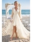ビーチウェディング ブライダルシャワー リトルホワイトドレス ブライダルシャワードレス カジュアルウェディングドレス Aライン Vネック 長袖 アシンメトリック シフォン ブライダルガウン ソリッドカラー