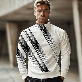 男性用 抽象的 幾何学的な ライン ポロ 長袖 スタンドカラー アスレイジャー バケーション アスレイジャー カジュアル/普段着 3Dプリント 春 秋 冬 ブラック ルビーレッド ブルー
