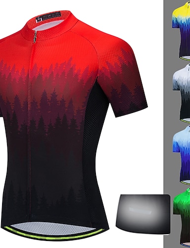 男性用 サイクリングジャージー 勾配 パターン柄 半袖 バイク ジャージー トップス 3つのリアポケット付き マウンテンサイクリング ロードバイク 速乾性 通気性 反射性ストリップ 後ポケット スポーツ イエロー レッド パープル 衣類