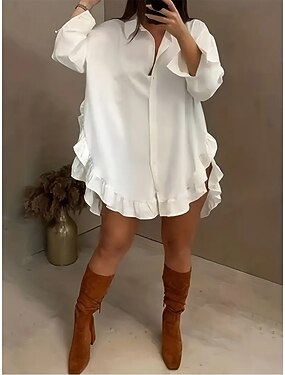 女性用 ミニドレス 白いドレス シャツドレス カジュアルドレス スタイリッシュ ベーシック カジュアル バケーション 日常 レギュラー 平織り 長袖 シャツカラー ホワイト 夏 春