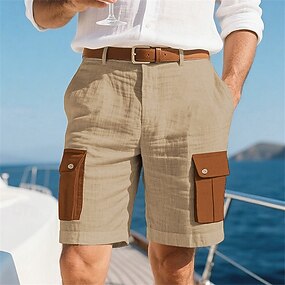 男性用 ショーツ リネンショーツ サマーショーツ ビーチショーツ マルチポケット フラップポケット カラーブロック 履き心地よい 高通気性 ショート バケーション 祝日 ビーチ ハワイアン ボヘミアン グリーン カーキ色