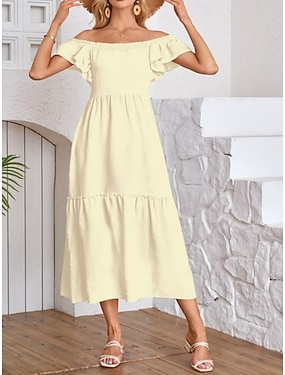 女性用 マキシドレス カジュアルドレス スイングドレス A ラインドレス スタイリッシュ ベーシック カジュアル バケーション 日常 レギュラー 平織り 半袖 スクエアネック ピンク ベージュ 夏 春