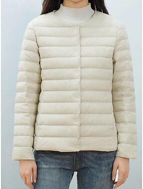 女性用 ダウン 快適 高通気性 ジッパー ポケット カジュアル 平織り バケーション ストリート カジュアル デイリーウェア シングルブレスト ショート 折襟 レギュラー 長袖 アウターウェア ブラック ホワイト カーキ色 春 秋