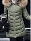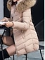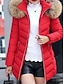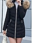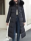 女性用 冬物コート ダウン パーカージャケット 保温 快適 ジッパー ポケット 毛皮の襟 カジュアル 平織り バケーション デイリーウェア お出かけ 週末 ロング フード付き レギュラー 長袖 アウターウェア ブラック ブルー ブラウン 秋 冬