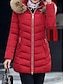 女性用 キルティングジャケット 快適 高通気性 ジッパー ポケット 毛皮の襟 カジュアル 平織り バケーション ストリート カジュアル デイリーウェア ジッパ- レギュラー フード付き レギュラー 長袖 アウターウェア ブラック ワイン ルビーレッド 春 秋