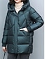 女性用 冬物コート ダウン 保温 快適 ジッパー ポケット カジュアル 平織り バケーション デイリーウェア お出かけ 週末 レギュラー フード付き レギュラー 長袖 アウターウェア 海軍 ブラック 秋 冬