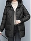 女性用 冬物コート ダウン コート 保温 快適 ジッパー ポケット 活発的 カジュアル 平織り バケーション デイリーウェア お出かけ 週末 ロング フード付き ルーズフィット 長袖 アウターウェア ブラック ホワイト ブラウン 秋 冬