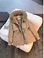 女性用 冬物コート テディコート 保温 快適 パッチワーク ジッパー ポケット ファッション カジュアル 純色 バケーション ストリート カジュアル デイリーウェア ロング フード付き レギュラー 長袖 アウターウェア キャメル 秋 冬