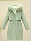女性用 冬物コート パーカー 保温 快適 ジッパー ポケット ベルト付き 毛皮の襟 カジュアル 平織り バケーション ストリート カジュアル デイリーウェア ロング フード付き スリム 長袖 アウターウェア ブラック ワイン アーミーグリーン 秋 冬