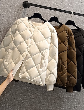 女性用 ダウン 快適 高通気性 ジッパー ポケット カジュアル 平織り バケーション ストリート カジュアル デイリーウェア ジッパ- ショート 折襟 レギュラー 長袖 アウターウェア ブラック ホワイト カーキ色 春 秋