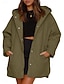 女性用 冬物コート パーカージャケット 保温 快適 ジッパー ポケット カジュアル 平織り バケーション デイリーウェア お出かけ 週末 ロング フード付き レギュラー 長袖 アウターウェア ブラック ワイン カーキ色 秋 冬
