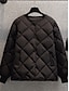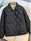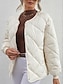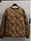 女性用 キルティングジャケット 快適 高通気性 ポケット ボタン カジュアル 平織り バケーション ストリート カジュアル デイリーウェア シングルブレスト ショート クルーネック レギュラー 長袖 アウターウェア ブラック ホワイト コーヒー 春 秋
