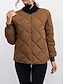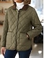 女性用 冬物コート キルティングジャケット 保温 快適 ジッパー ポケット カジュアル 平織り バケーション お出かけ 週末 レギュラー スタンド レギュラー 長袖 アウターウェア 葉 ブラック ピンク 秋 冬