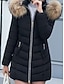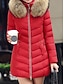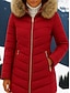 女性用 冬物コート ダウン パーカージャケット 保温 快適 ジッパー ポケット 毛皮の襟 カジュアル 平織り バケーション お出かけ 週末 ロング フード付き レギュラー 長袖 アウターウェア ブラック ルビーレッド カーキ色 秋 冬