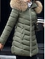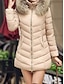 女性用 冬物ジャケット ダウン カジュアルジャケット 保温 快適 ジッパー ポケット 毛皮の襟 ファッション カジュアル 平織り ストリート デイリーウェア お出かけ ジッパ- ロング フード付き レギュラー 長袖 アウターウェア ブラック カーキ色 ベージュ 秋 冬