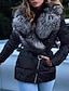 女性用 冬物コート ダウン フェイクファーコート 保温 快適 ジッパー ポケット カジュアル 平織り バケーション お出かけ 週末 レギュラー 折襟 レギュラー 長袖 アウターウェア ブラック グレー 秋 冬
