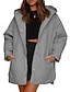 女性用 パーカー 快適 高通気性 ジッパー ポケット カジュアル 平織り バケーション ストリート カジュアル デイリーウェア ジッパ- ロング フード付き ルーズフィット 長袖 アウターウェア ブラック ピンク カーキ色 春 秋