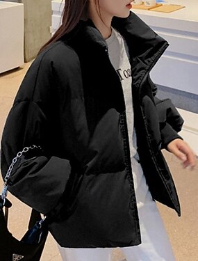 女性用 冬物ジャケット ダウン カジュアルジャケット 保温 快適 ジッパー ポケット ファッション カジュアル 平織り ストリート カジュアル デイリーウェア お出かけ ジッパ- ショート スタンド レギュラー 長袖 アウターウェア ブラック ピンク 秋 冬
