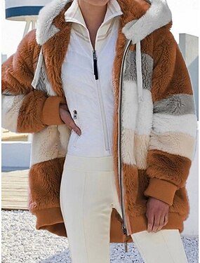 女性用 フリースの上着 テディコート パーカージャケット 保温 高通気性 ジッパー ポケット フリースライナー カジュアル 縞 バケーション ストリート デイリーウェア お出かけ ジッパ- レギュラー パーカー レギュラー 長袖 アウターウェア ブラック ブルー ライトパープル 秋 冬