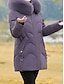 女性用 ダウン コート 保温 快適 ジッパー ポケット カジュアル 平織り アウトドア バケーション 祝日 お出かけ ジッパ- ロング フード付き レギュラー 長袖 アウターウェア ライトブルー ホワイト パープル 秋 冬