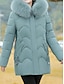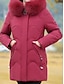 女性用 冬物コート 快適 高通気性 ジッパー ポケット 毛皮の襟 エレガント カジュアル 平織り バケーション ストリート カジュアル デイリーウェア シングルブレスト レギュラー フード付き レギュラー 長袖 アウターウェア ブラック ルビーレッド ブルー 春 秋