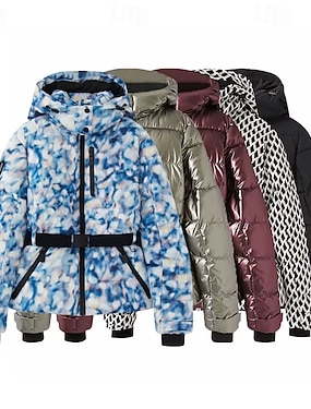 女性用 冬物コート キルティングジャケット 防水 保温 ジッパー ポケット カジュアル カラーブロック アウトドア バケーション デイリーウェア お出かけ レギュラー フード付き レギュラー 長袖 アウターウェア ブラックとホワイト ブラック ルビーレッド 秋 冬