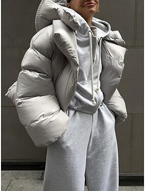 女性用 ダウン パフジャケット キルティングジャケット 保温 快適 ジッパー ポケット ファッション カジュアル 平織り ストリート デイリーウェア お出かけ ジッパ- レギュラー フード付き レギュラー 長袖 アウターウェア ブラック ホワイト キャメル 秋 冬