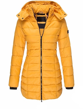 女性用 冬物コート ダウン パーカージャケット 保温 快適 ジッパー ポケット カジュアル 平織り バケーション デイリーウェア お出かけ 週末 ロング フード付き レギュラー 長袖 アウターウェア 海軍 ブラック イエロー 秋 冬