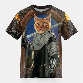 男性用 猫 Tシャツ 半袖 Tシャツ 3Dプリント クルーネック シャツ ファッション 誇張された 日常 パーティー ストリート カジュアル ホワイト 夏 春 オールシーズン 衣類 S M L XL XXL XXXL 4XL