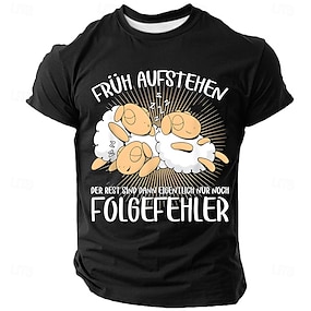 男性用 面白いスラング ドイツ語 Tシャツ 半袖 Tシャツ 3Dプリント クルーネック シャツ ファッション 日常 ストリート 日常 ブラック ルビーレッド ブルー 夏 春 衣類 S M L XL XXL XXXL