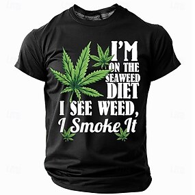 男性用グラフィックTシャツ - 面白いカンナビス「海藻ダイエット、私は草を見る、そして吸う」ユーモアTシャツ