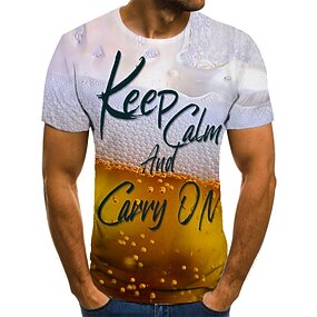 男性用 グラフィック ビール シャツ Tシャツ 半袖 Tシャツ 3Dプリント ラウンドネック シャツ シック・モダン 快適 大きくて背が高い 日常 祝日 週末 ブラック イエロー ルビーレッド 夏 衣類 S M L XL XXL 3XL