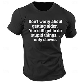 男性用面白グラフィックTシャツ | ユーモラスな老化の引用 '愚かなことは遅くなるだけ' 半袖ティー