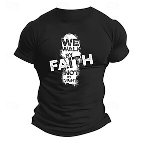 男性用 信仰 Tシャツ ティートップ コットン 半袖 グラフィック シャツ ブラック ホワイト ルビーレッド 快適なTシャツ ストリート スポーツ・アウトドア ファッションデザイナーの衣類