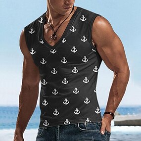 男性用 グラフィック アンカー アーガイル柄 タンクトップ ベストトップ 男性用ノースリーブTシャツ ノースリーブ Tシャツ 3Dプリント Vネック シャツ スポーツ ファッション カジュアル スポーツ・アウトドア 祝日 ジム用 ブラック バーガンディー グリーン 夏 衣類 S M L XL 2XL 3XL