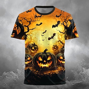 Halloween 男性用 3D印刷 カボチャ 3D Tシャツ 半袖 Tシャツ 3Dプリント クルーネック シャツ 誇張された デザイナー ホラー パーティー ストリート 祝日 オレンジ3 ブラック オレンジ 夏 春 オールシーズン 衣類 S M L XL XXL XXXL