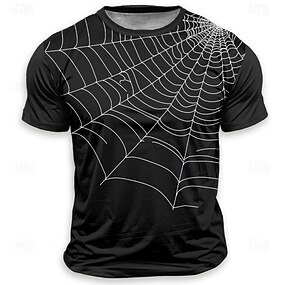 Halloween 男性用 蜘蛛の巣 Tシャツ 半袖 Tシャツ 3Dプリント クルーネック シャツ ファッション アスレイジャー ストリート スポーツ・アウトドア ブラック 夏 春 衣類 S M L XL XXL XXXL