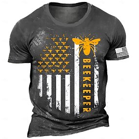 退役軍人の日 メンズ パトリオット 愛国者 ベテラン 蜂 アメリカ 米国旗 スローガン Tシャツ 半袖 Tシャツ 3Dプリント クルーネック シャツ レトロ ビンテージ カジュアル ストリートスタイル スポーツ アウトドア ホリデー 外出用