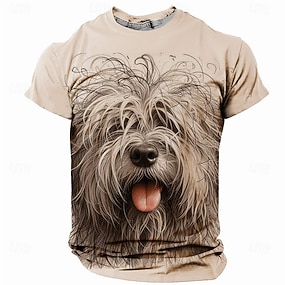 男性用 グラフィック 動物 犬 Tシャツ 半袖 Tシャツ 3Dプリント クルーネック シャツ 日常 デザイナー レトリ/ヴィンテージ スポーツ・アウトドア 祝日 お出かけ ブラック カーキ色 春夏 衣類 S M L XL 2XL 3XL 4XL