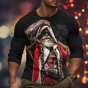 クリスマス 男性用 グラフィック サンタクロース Tシャツ 長袖 Tシャツ 3Dプリント クルーネック シャツ ファッション デザイナー カジュアル スポーツ・アウトドア 祝日 お出かけ ブラック バーガンディー ダークグリーン 春 & 秋 衣類 S M L XL 2XL 3XL 4XL