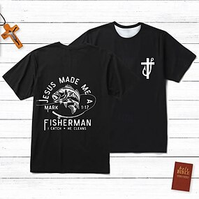 イースター 男性用 観賞魚用 イエス Tシャツ 半袖 Tシャツ 3Dプリント クルーネック シャツ デザイナー カジュアル パーティー 祝日 ブラック ホワイト ルビーレッド 夏 春 衣類 S M L XL XXL XXXL