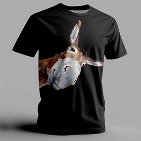 男性用 ロバ Tシャツ 半袖 Tシャツ 3Dプリント クルーネック シャツ ファッション アスレイジャー ストリート スポーツ・アウトドア ブラック ホワイト ライトブラウン 夏 春 衣類 S M L XL XXL XXXL