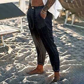 男性用 リネンパンツ ズボン サマーパンツ ビーチパンツ ドローストリング フロントポケット 平織り 履き心地よい 高通気性 カジュアル 日常 祝日 ファッション ベーシック ブラック ホワイト