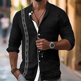 男性用 シャツ バンドカラーシャツ サマーシャツ ビーチウェア ボタンアップシャツ 平織り アウトドア バケーション ブラック ホワイト ブルー グリーン 長袖 折襟 春 & 秋 衣類