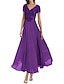 ドレス フロアレングス ウェディングゲストドレス フォーマルドレス フレアドレス 花嫁の母ドレス ショートスリーブ Vネック エレガント ビンテージ ウェディングゲスト ソリッドカラー付き
