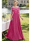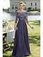 Aライン タイト/コラム フロア丈 ウェディングゲストドレス フォーマルドレス イブニングガウン マダムドS 長袖 ボートネック エレガント フォーマルイブニング シフォン 〜と ソリッドカラー