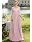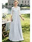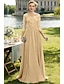 Aライン ドレス フロア丈 ウェディングゲストドレス フォーマルドレス イブニングガウン マダムドS 七分袖 ボートネック エレガント シンプル ミニマリスト フォーマル シフォン ショール 〜と フリル パール装飾